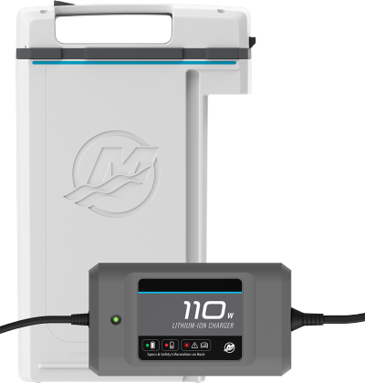 Lithium-iontová baterie o kapacitě 1 kWh nevyžaduje žádné kabely k připojení. Jednoduše se zasune pod odklopný kryt, čímž šetří cenné místo na lodi. Chcete-li urazit ještě delší vzdálenost, žádný problém – můžete s sebou vzít volitelnou náhradní baterii, kterou během několika sekund vyměníte na místě.